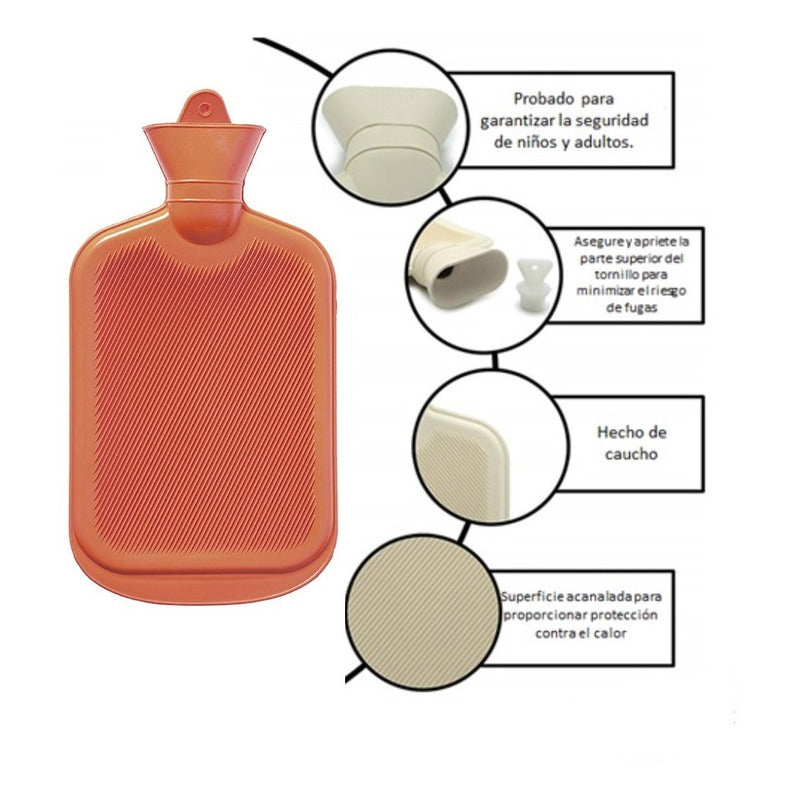 - Esta bolsa de agua de calor viene con goma ultra Segura con tapa de rosca.