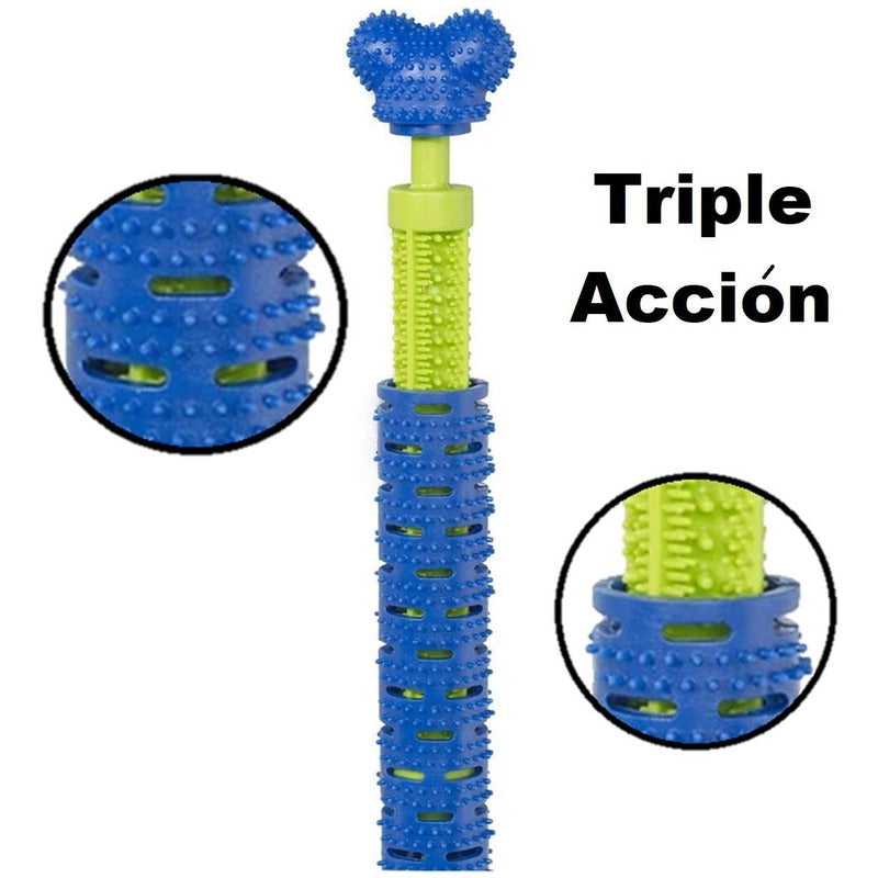 Producto de excelente calidad, triple acción: Cepilla los dientes, Raspa el sarro y la placa, y da masaje a la encía de canino, este producto es recomendado para perros de raza grande ya que tiene 24 cm de largo y unos 3,5 cm de diámetro aprox.