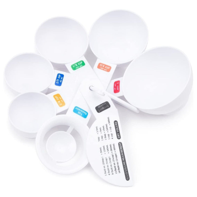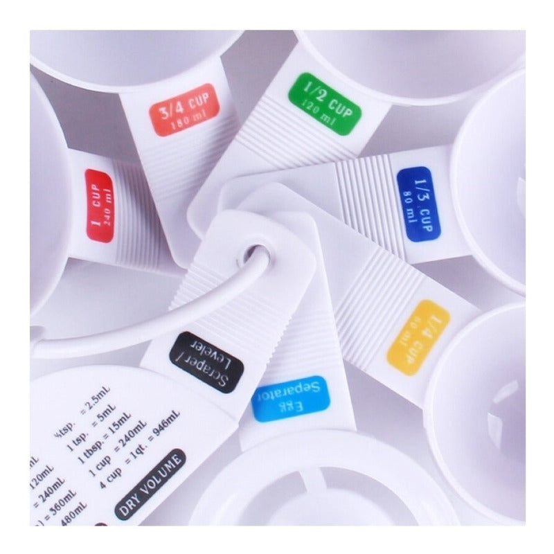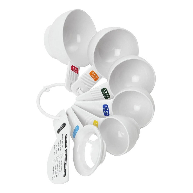 Este colorido juego de tazas medidoras tiene 5 tamaños diferentes.
