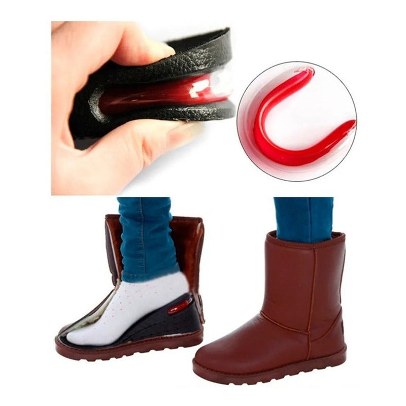 Plantilla que permite aumentar hasta 7 centímetros de estatura, es unisex y apta para la mayoría de zapatos, cuenta con cámara de aire para proporcionar mayor comodidad al usarla.