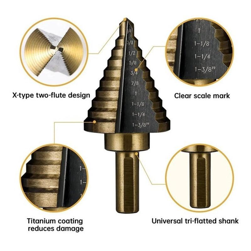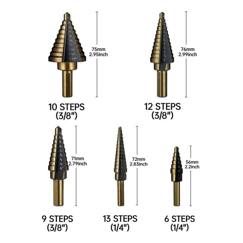Set 5 Brocas Escalonadas Acero Hss Brocas Cobalto 50 Tamaños