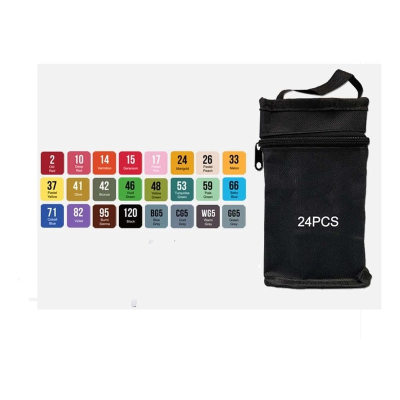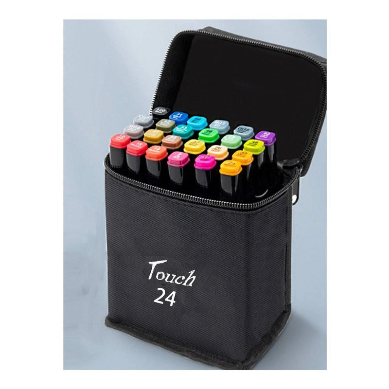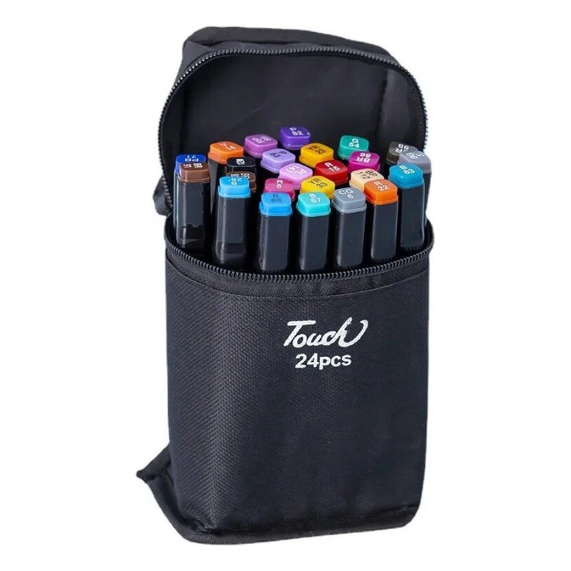 Set 24 Marcadores Doble Punta Con Estuche Plumones Artístico