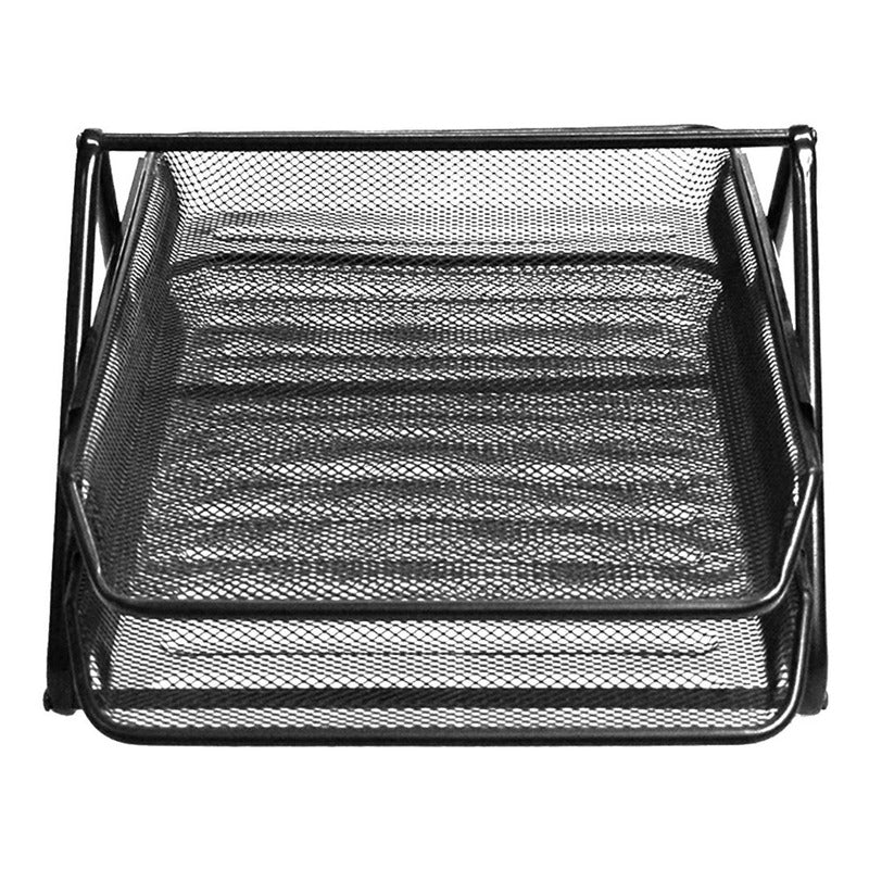 Soporte bandeja organizadora de malla metálica de 2 niveles, soporte para documentos, revistas, papel de carta, etc.