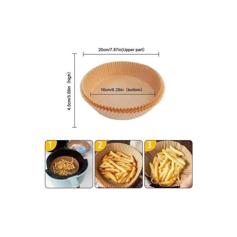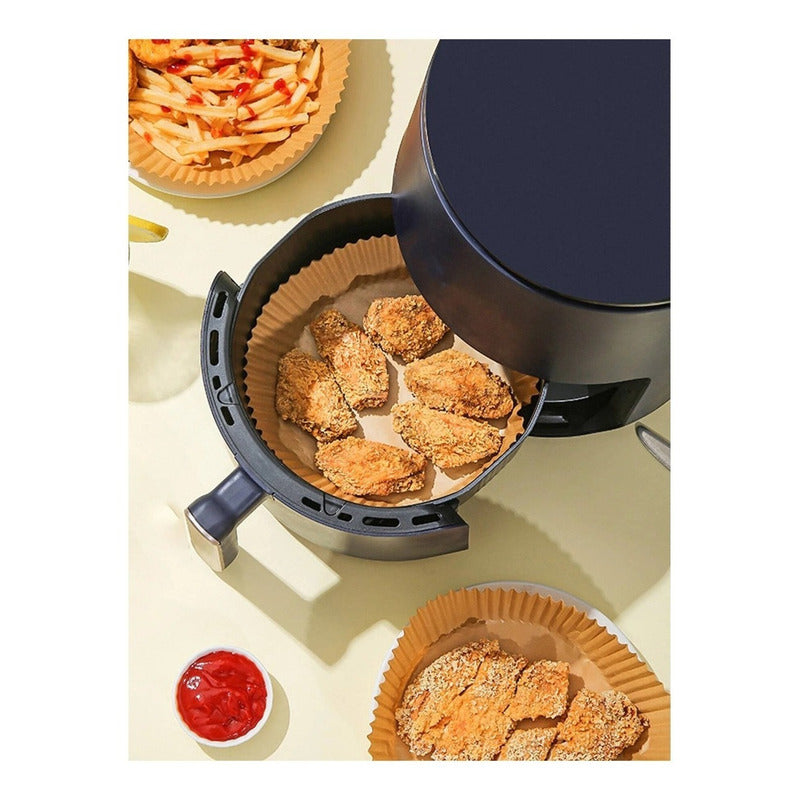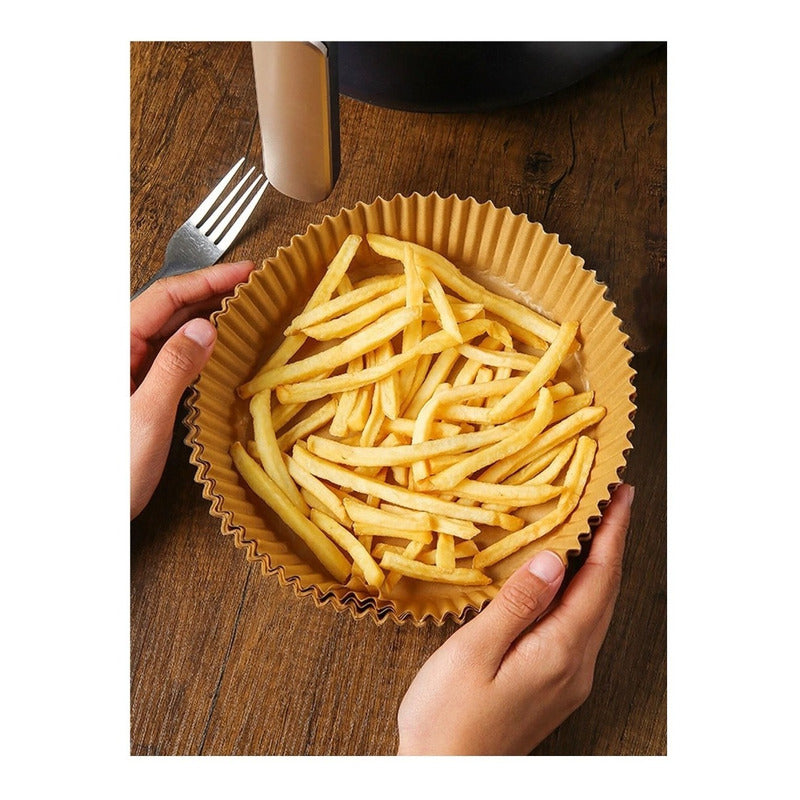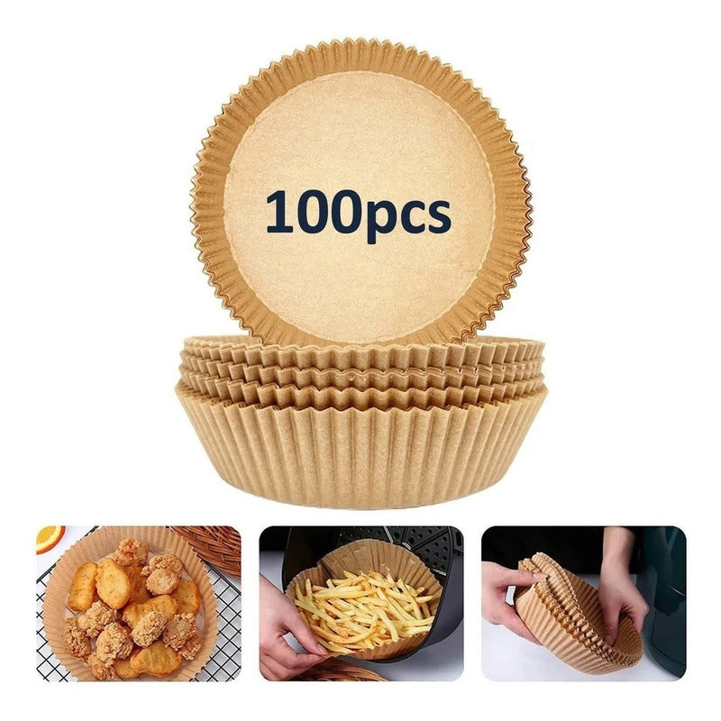 Pack x100 Papel Desechable para Air Fryer Antiadherente, 100% saludable y con buena resistencia al calor, puede soportar temperaturas de hasta 428 °F.