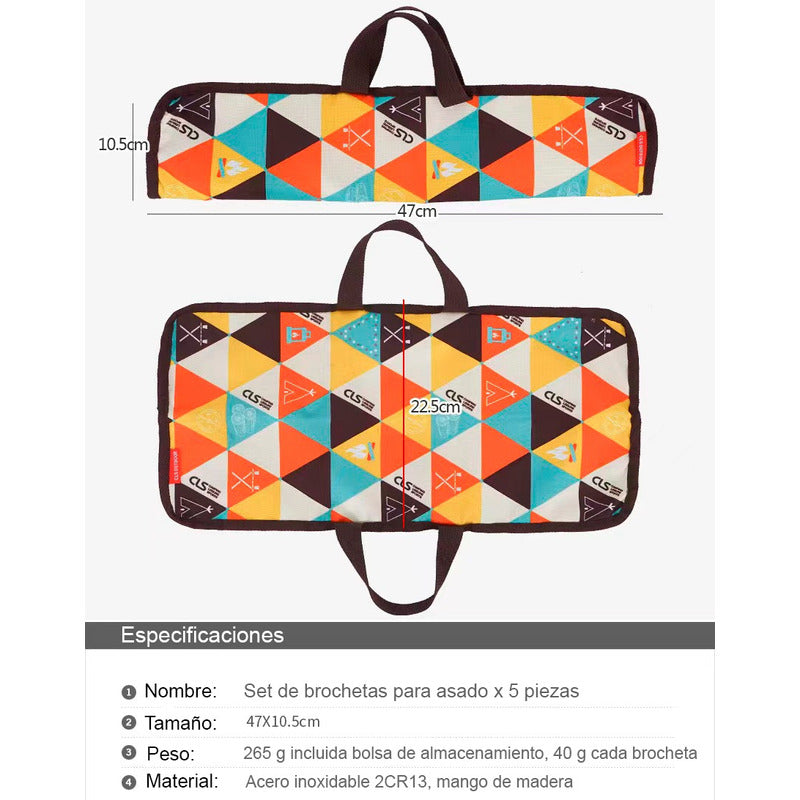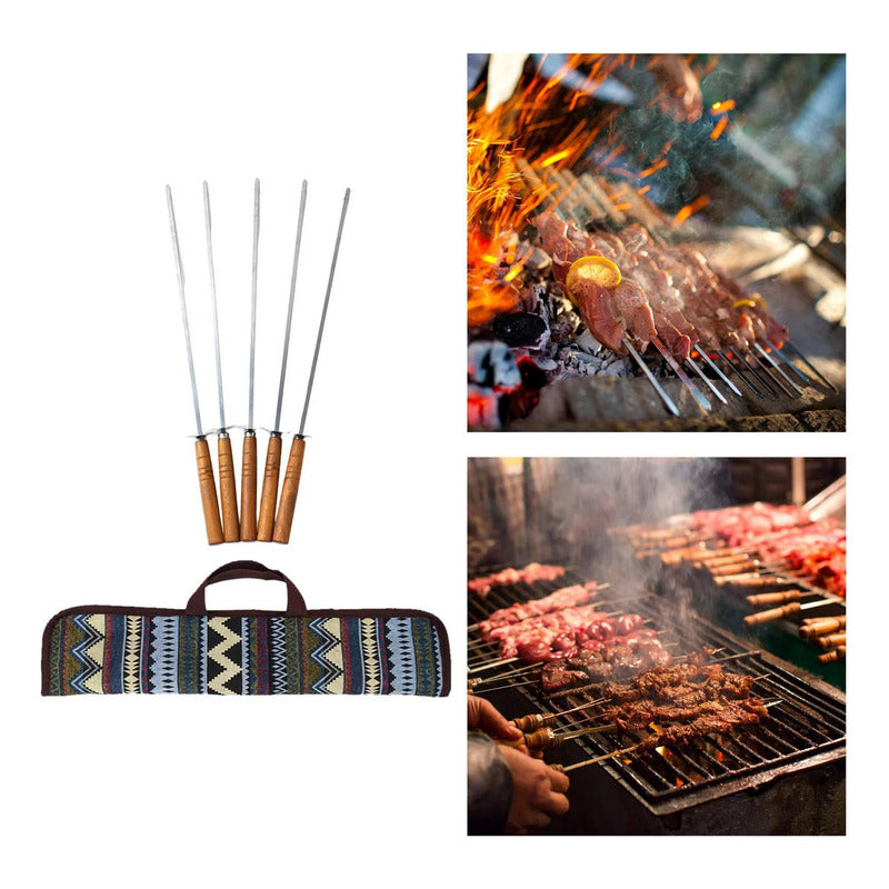 Set 5 Brochetas Para Asado Anticucho Pinchos Acero Inoxidabl