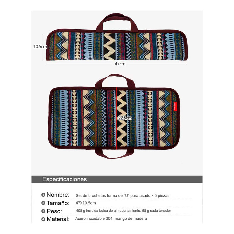 ¡Prepara tus asados y parrilladas con estilo con nuestro Set de 5 Brochetas de Acero Inoxidable. Cada brocheta cuenta con un elegante mango de madera, cada una mide 42 cm, son fáciles de limpiar y están diseñadas para resistir el calor, estas brochetas son el complemento perfecto para tus momentos al aire libre. ¡Haz que tus platos sean aún más deliciosos con nuestro set de brochetas!