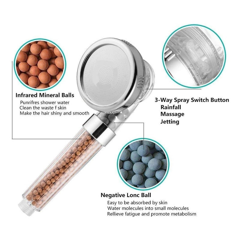 - Material: ABS-plástico y cromo, Piedras filtro iónico