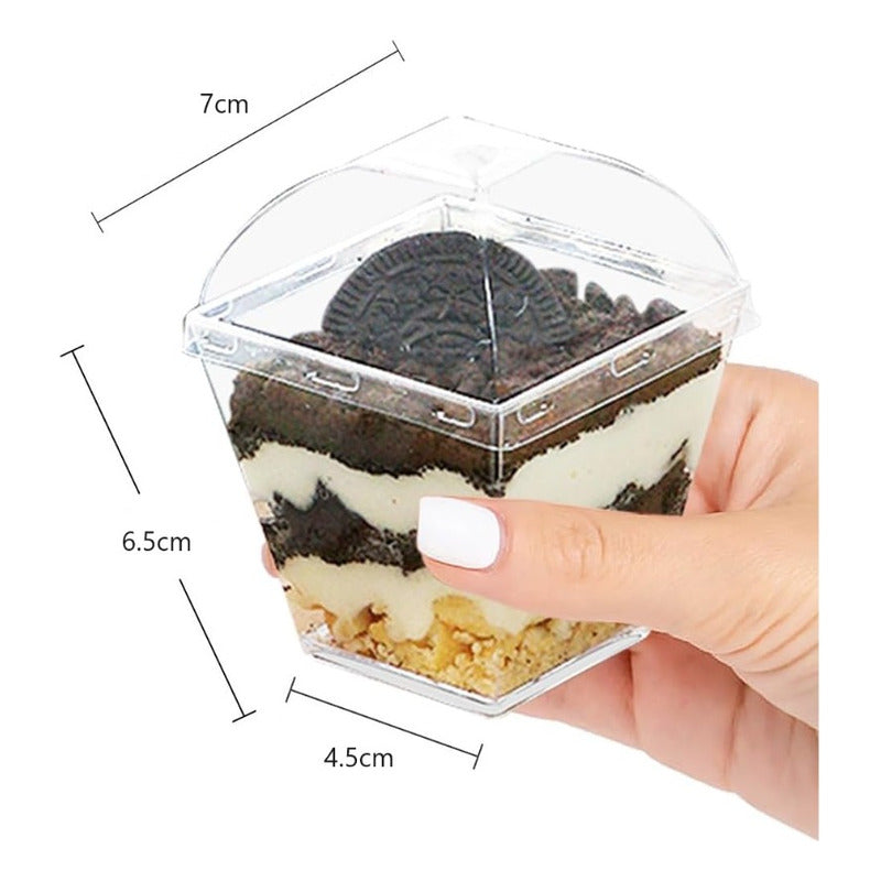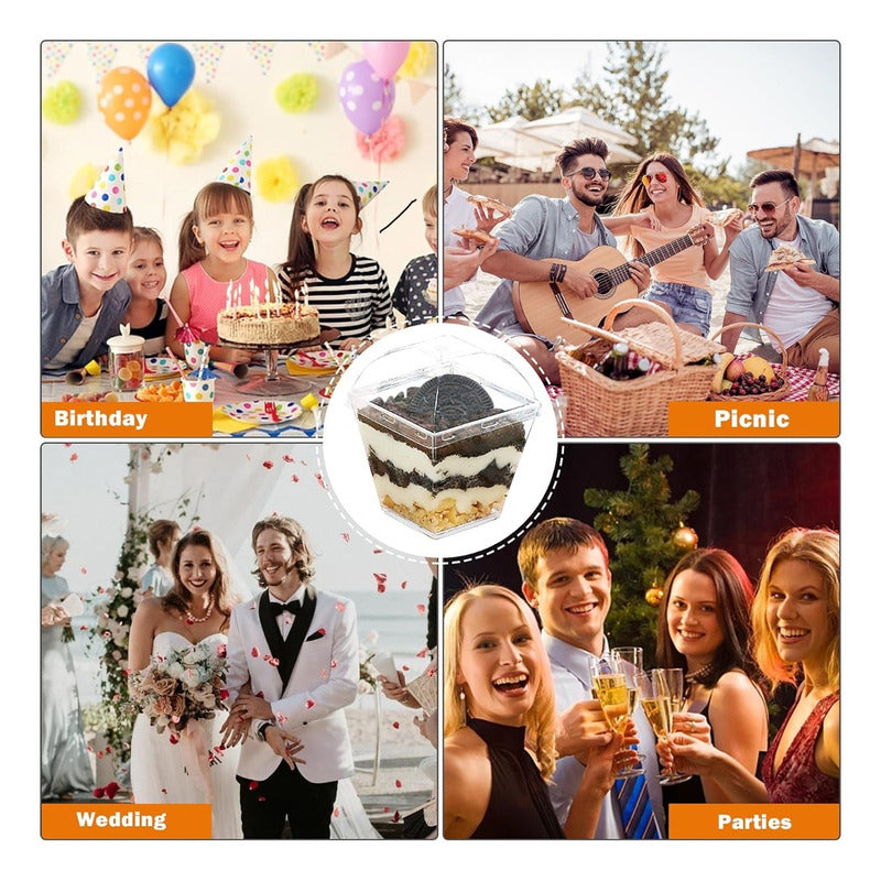 Funcionan muy bien para contener porciones individuales de postres de fiesta, y las tazas se pueden apilar para un fácil almacenamiento y ahorrar espacio.