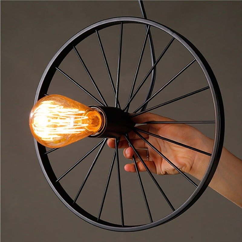 Lampara Colgante Vintage Tipo Rueda Rustica Ideal Para Interiores y Exteriores.
