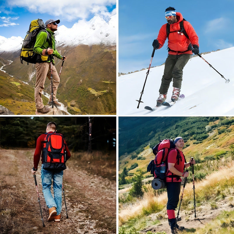 Durable: ya sea que esté caminando por terrenos accidentados o caminando con raquetas de nieve en polvo fresco, necesita equipo de senderismo que pueda mantenerse al día. Los bastones de trekking para acampar al aire libre son lo suficientemente fuertes como para soportar cualquier condición climática.