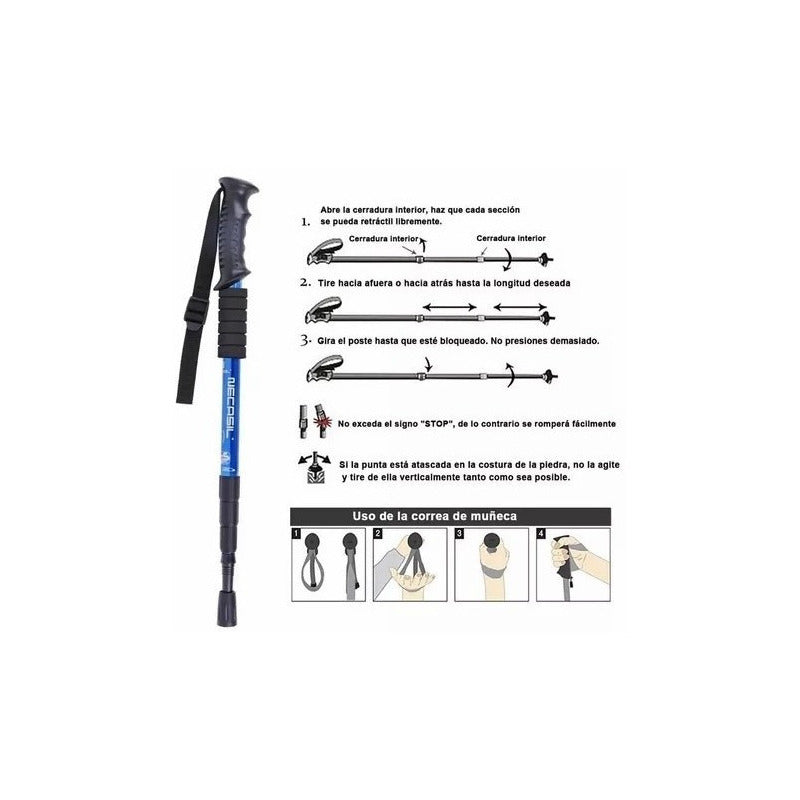 1 Bastón Plegable Ligero Senderismo Treking Caminar Escalar Color Azul