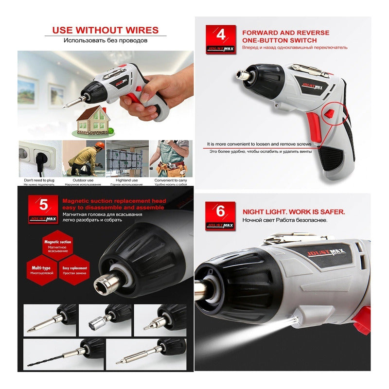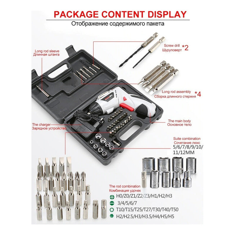 Atornillador Eléctrico Atornillador Inalambrico + Set 45 Pz Color Gris Frecuencia 50/60