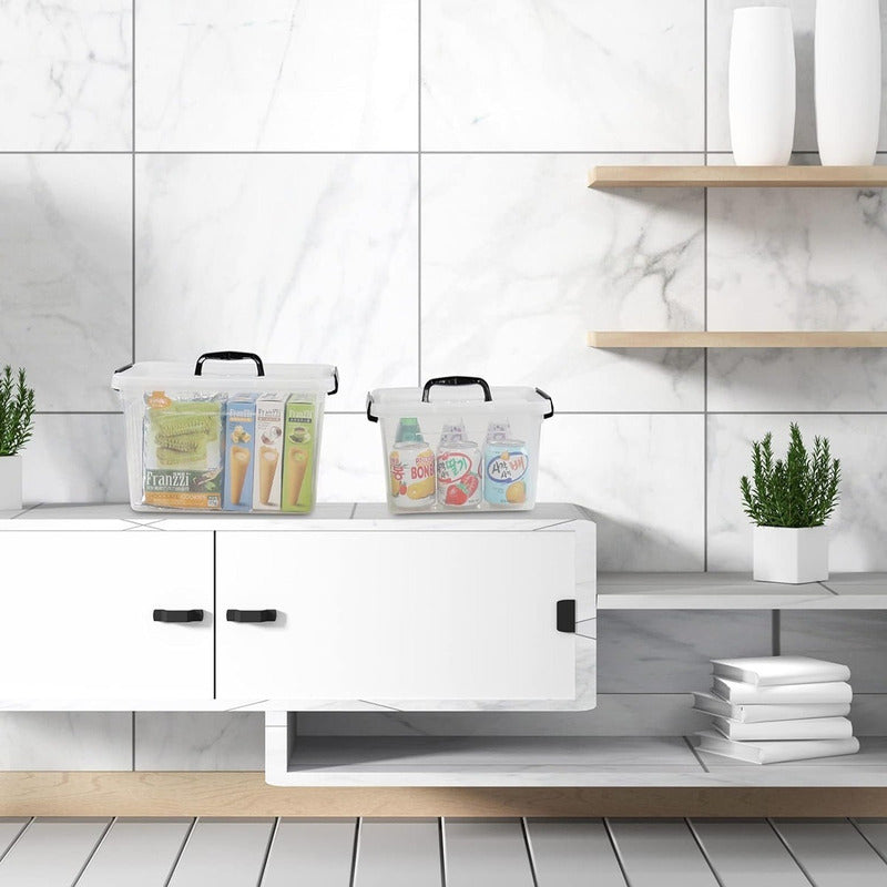El mango incorporado hace que sea fácil tirar de la caja de un estante y llevar.