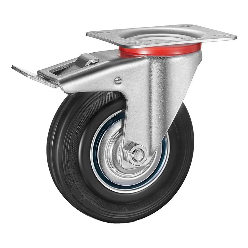 Ruedas giratorias de 100 mm. Estas ruedas giratorias con frenos será el accesorio perfecto para equipos pequeños y muebles como banco de trabajo, carrito, mesa de café, soporte de plantas, estantería, carrito de compras, etc.