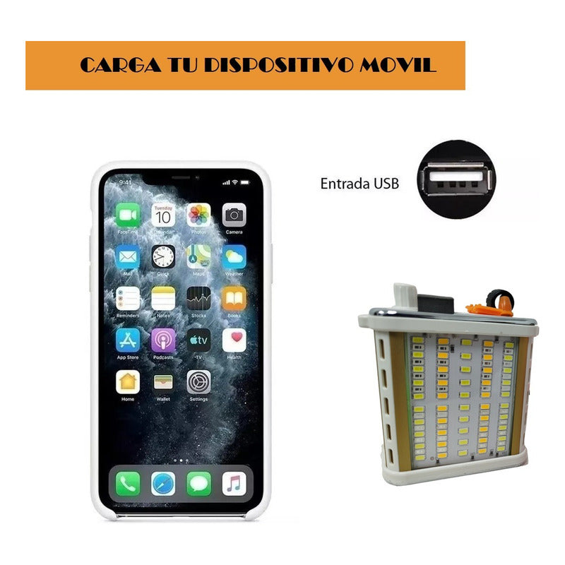 - Banco de poder para carga (usb): Además de su función principal como foco, este producto también puede actuar como un banco de poder que te permite cargar otros dispositivos a través de su puerto USB. Nunca te quedarás sin batería en tus dispositivos mientras estás de viaje.