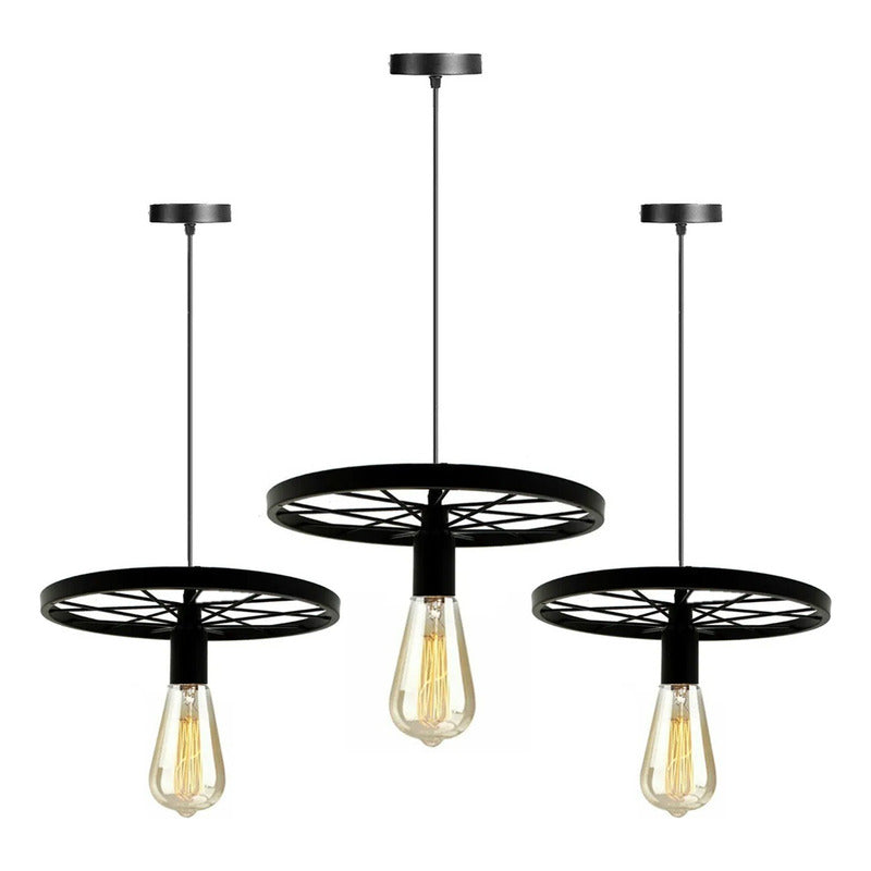 Pack X3 Lampara Colgante Rueda Rústica Lampara Vintage Techo