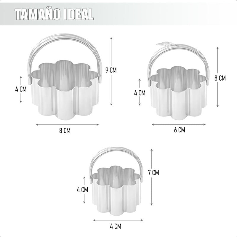 Los cortadores tienen un acabado suave que facilita el desmoldado de la masa o hojaldre. Esto evita que se peguen y ayuda a mantener la forma de las galletas durante el proceso de corte.