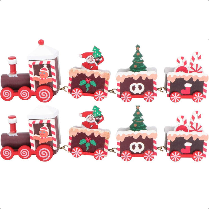 Pack X2 Tren Madera Adornos Navideños Decoración Hogar Navid