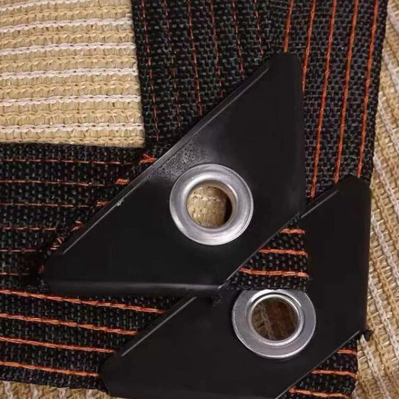 Tiene ojales en todos los bordes para poder instalar, también incluye cuerdas.