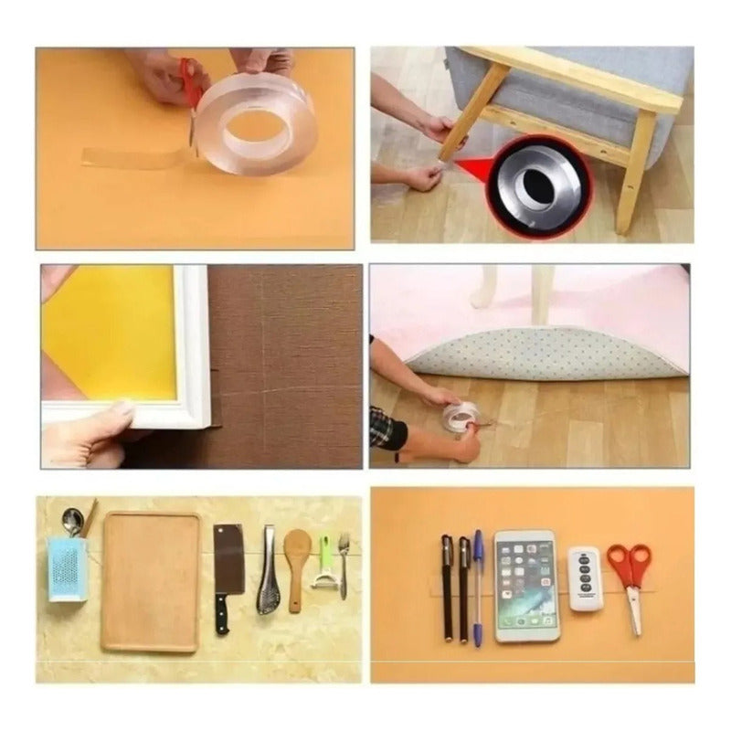 Pack X2 Cinta Doble Contacto Cinta Doble Faz Cinta Magica 5m Color Transparente