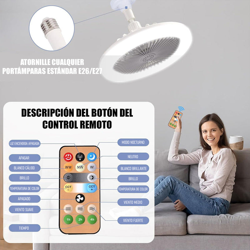 La mini bombilla del ventilador de techo solo necesita atornillarse en cualquier soporte de lámpara estándar E26/E27 para lograr una instalación rápida y fácil. En menos de un minuto, puedes iniciarlo y ejecutarlo, despedirte de la instalación tediosa y disfrutar fácilmente de la luz brillante y el viento fresco