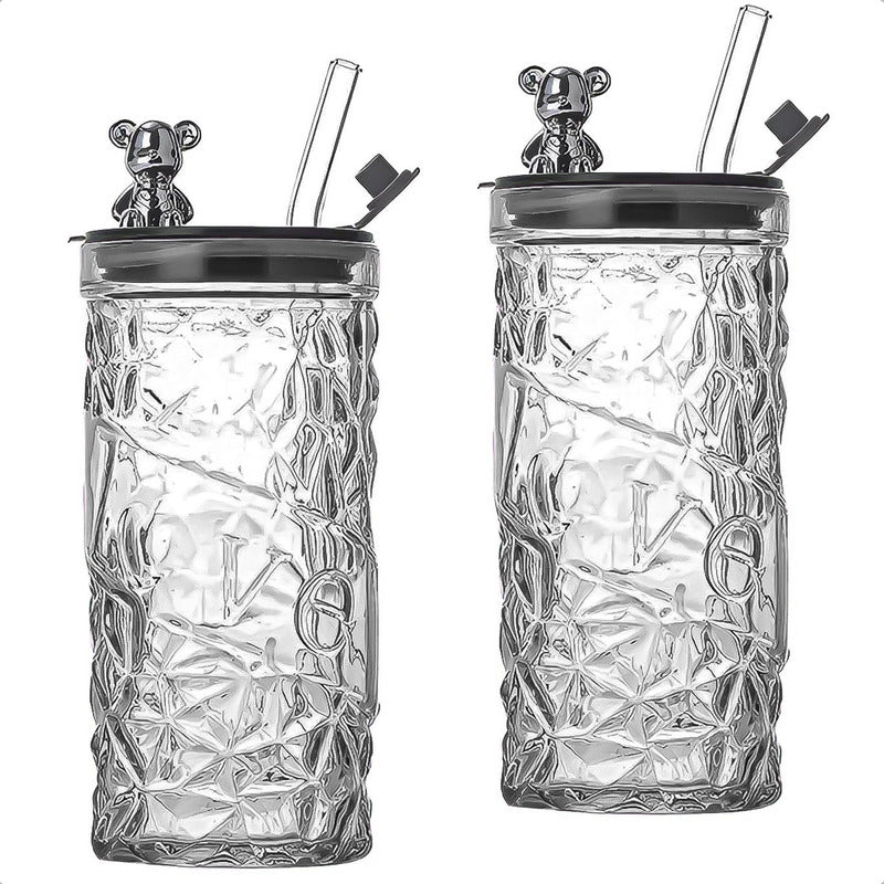 Pack X2 Vasos De Vidrio Vaso De Bebida Con Bombilla 400 Ml