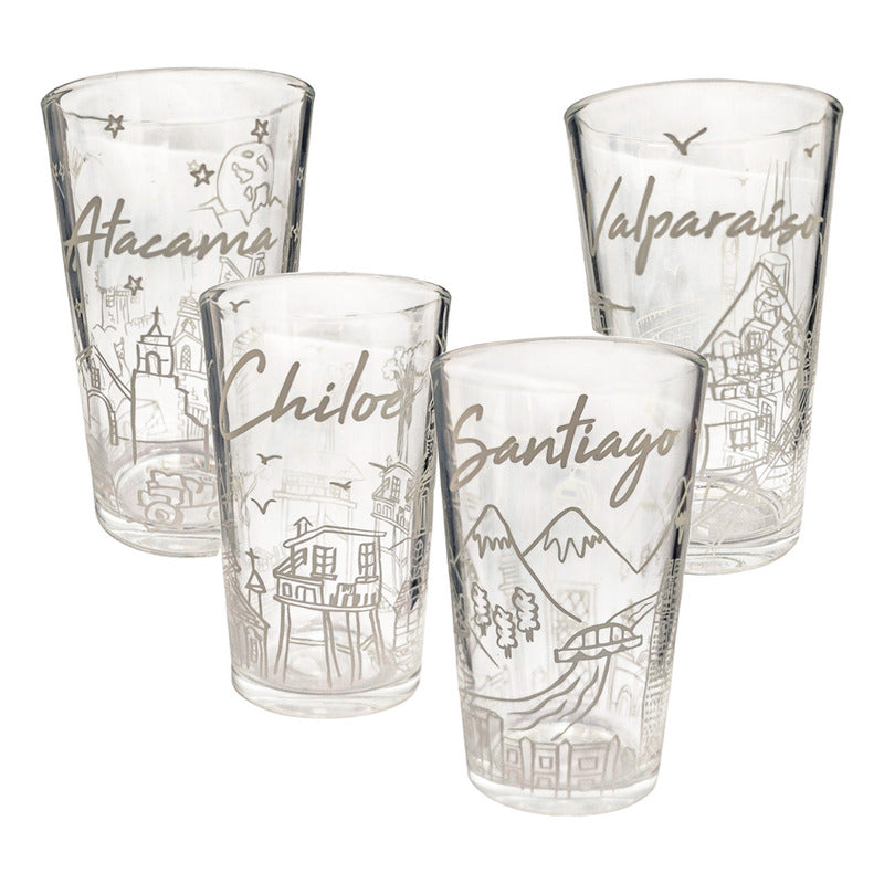 SET DE 4 VASOS DE VIDRIO REGIONES DE CHILE