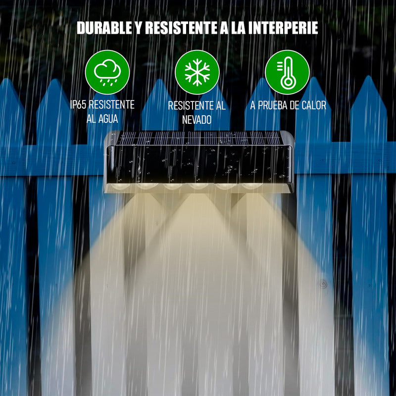 Estas luces solares para exteriores están hechas de material ABS de alta calidad para garantizar la durabilidad en todo clima, y su clasificación de impermeabilidad IP54 está diseñada para garantizar un funcionamiento estable en cualquier condición climática y una vida útil prolongada, por lo que puede estar seguro de que se utilizarán al aire libre.