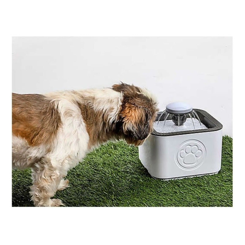 Fuente Electrica Bebedero De Agua Para Mascotas Color Blanco: Con una capacidad de agua de 2.5L, esta fuente proporciona un flujo de agua constante, manteniendo a tu gato o perro feliz e hidratado. El agua fluye de manera circular, lo que resulta más atractivo para tu mascota que un tazón de agua ordinario, incentivándola a beber más.