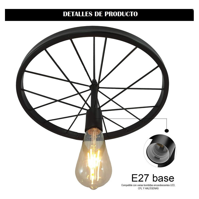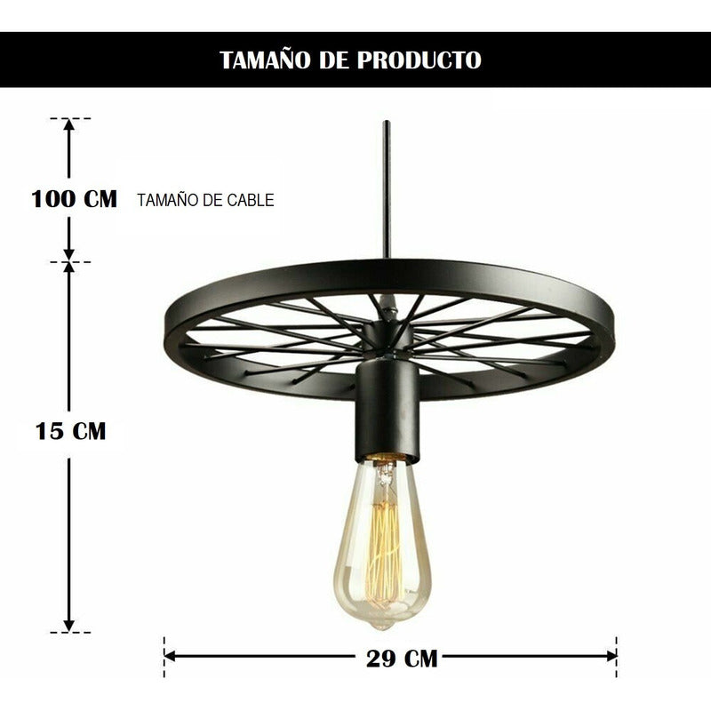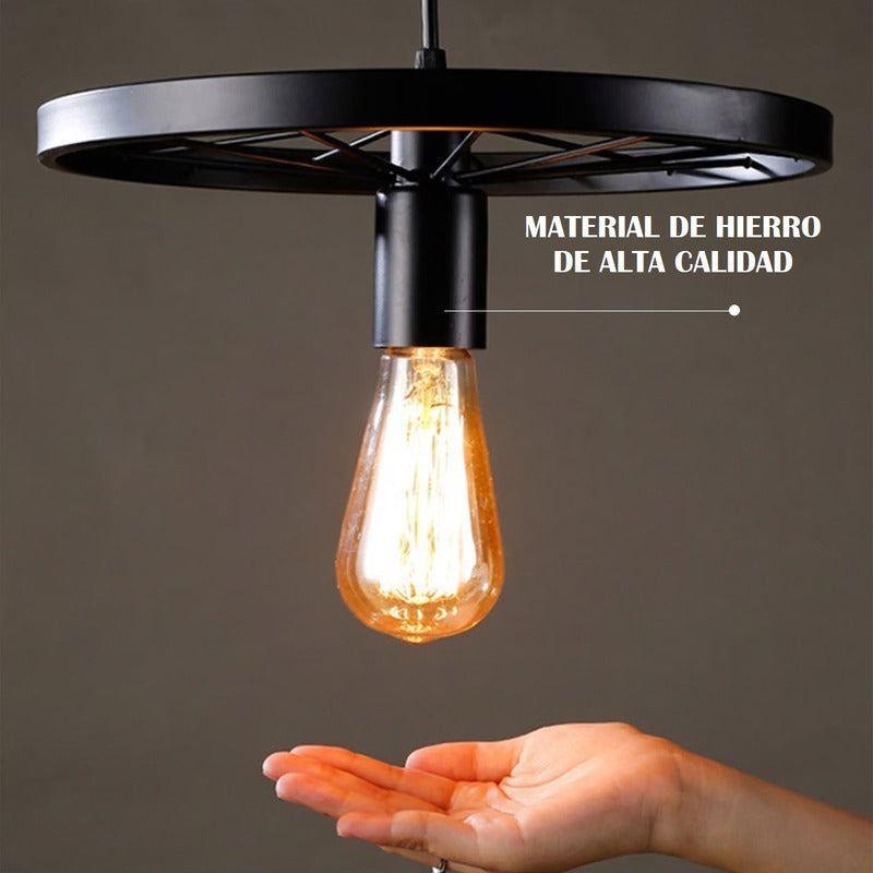 Lampara Colgante Vintage Tipo Rueda Rustica Ideal Para Interiores y Exteriores.