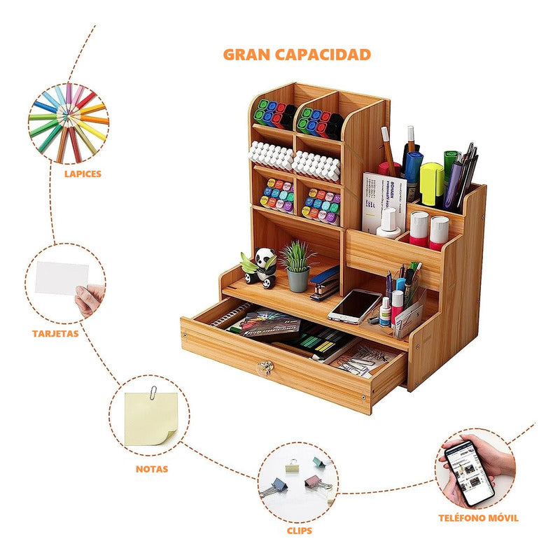 Organizador Escritorio Madera Portalápices Oficina Escuela