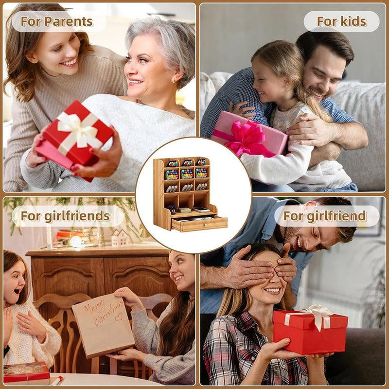 Organizador Escritorio Madera Con Cajon Portalápices Oficina