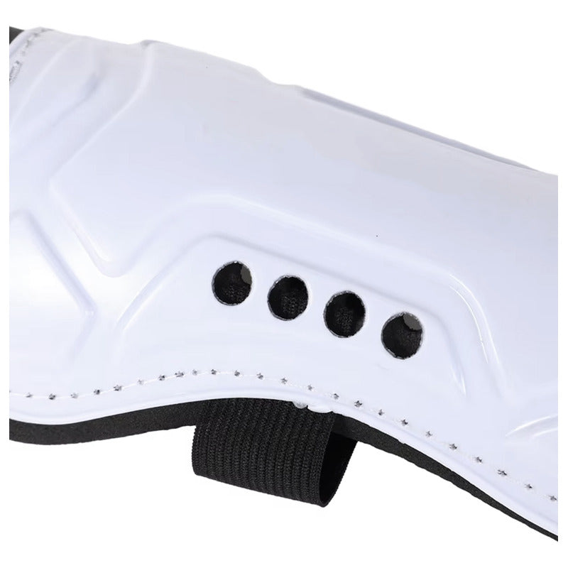 Las canilleras de fútbol tienen una capa de plástico duro en el exterior que puede resistir eficazmente los golpes a la hora de jugar futbol. La capa interior está hecha goma EVA que es suave y tiene una maravillosa resistencia flexible.