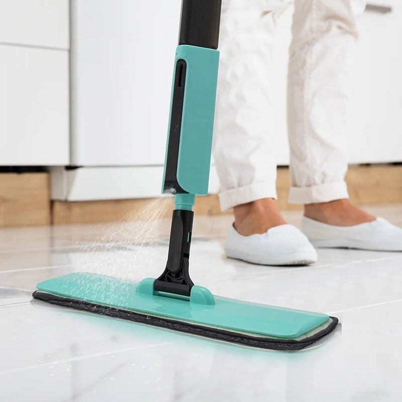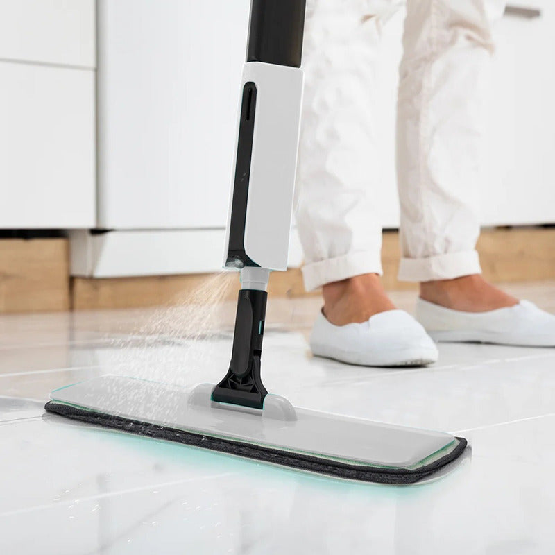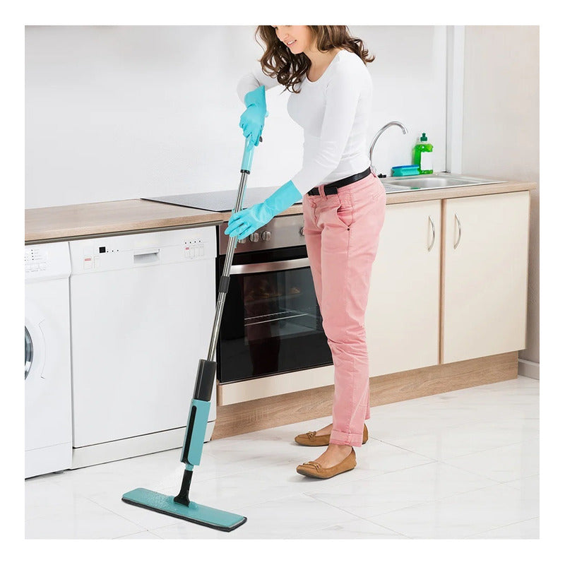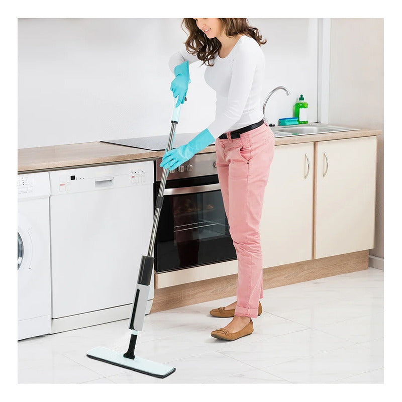 Este trapeador con aerosol te permite limpiar tu suelo de forma rápida y cómoda. Utiliza cualquier solución en la botella o simplemente agua caliente. Simplemente inserta la botella completa en el trapeador, y el mango del gatillo te permite dispensar un spray uniforme sobre el camino de la trapeadora.