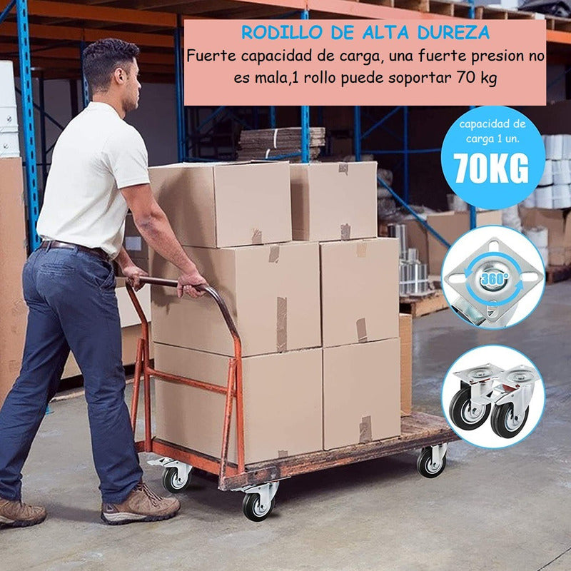 Ruedas giratorias de 100 mm. Estas ruedas giratorias con frenos será el accesorio perfecto para equipos pequeños y muebles como banco de trabajo, carrito, mesa de café, soporte de plantas, estantería, carrito de compras, etc.