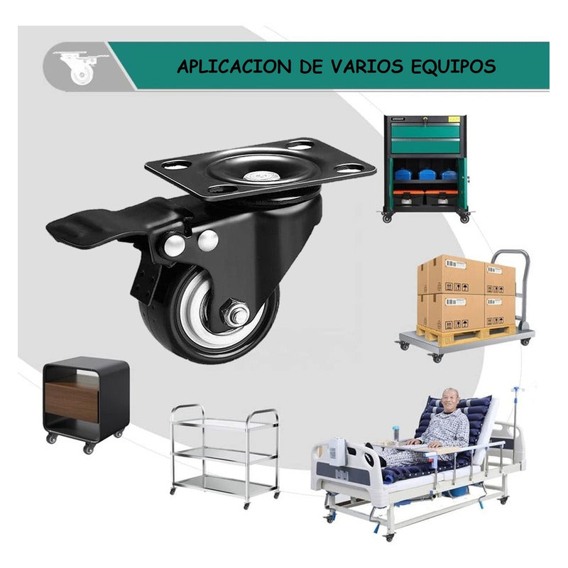Pack X4 Rueda Giratoria 2 Pulgadas Rueda Con Freno Multiuso