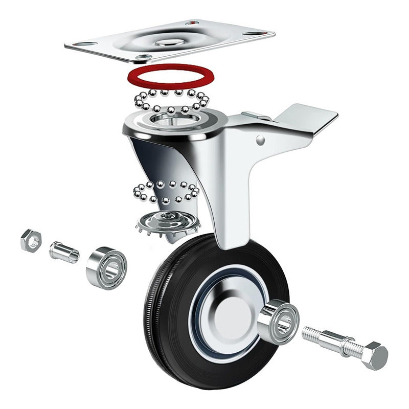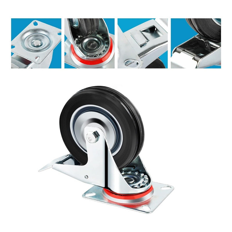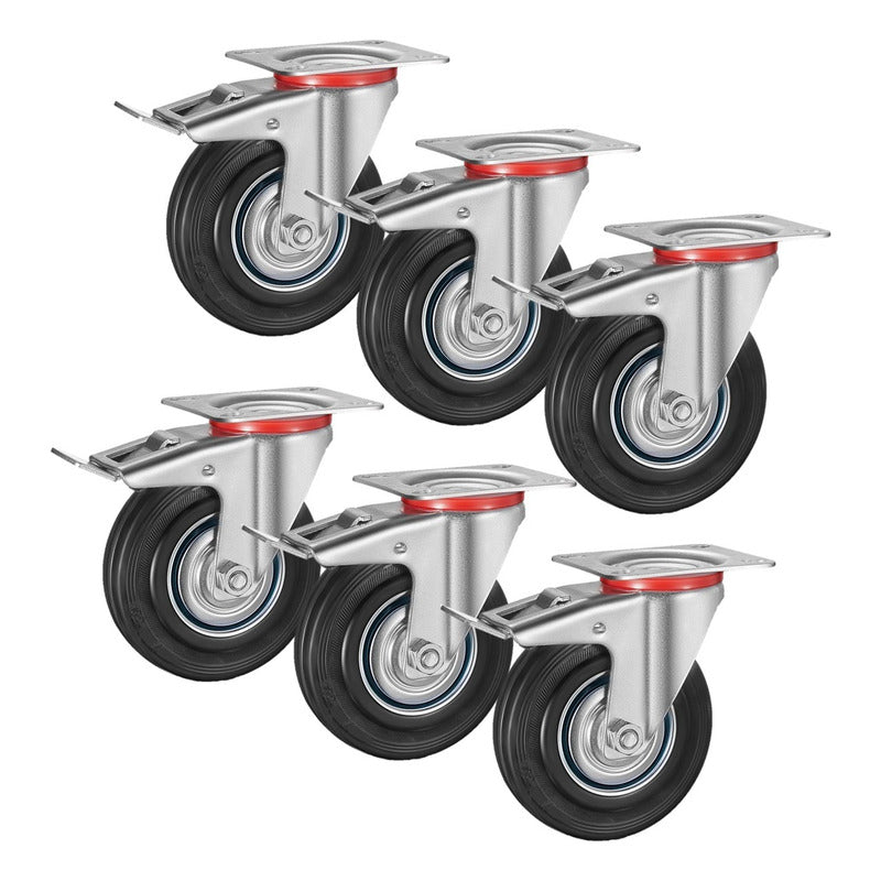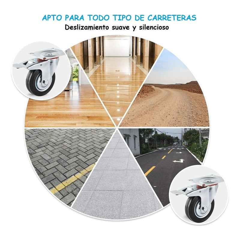 Ruedas giratorias de 100 mm. Estas ruedas giratorias con frenos será el accesorio perfecto para equipos pequeños y muebles como banco de trabajo, carrito, mesa de café, soporte de plantas, estantería, carrito de compras, etc.