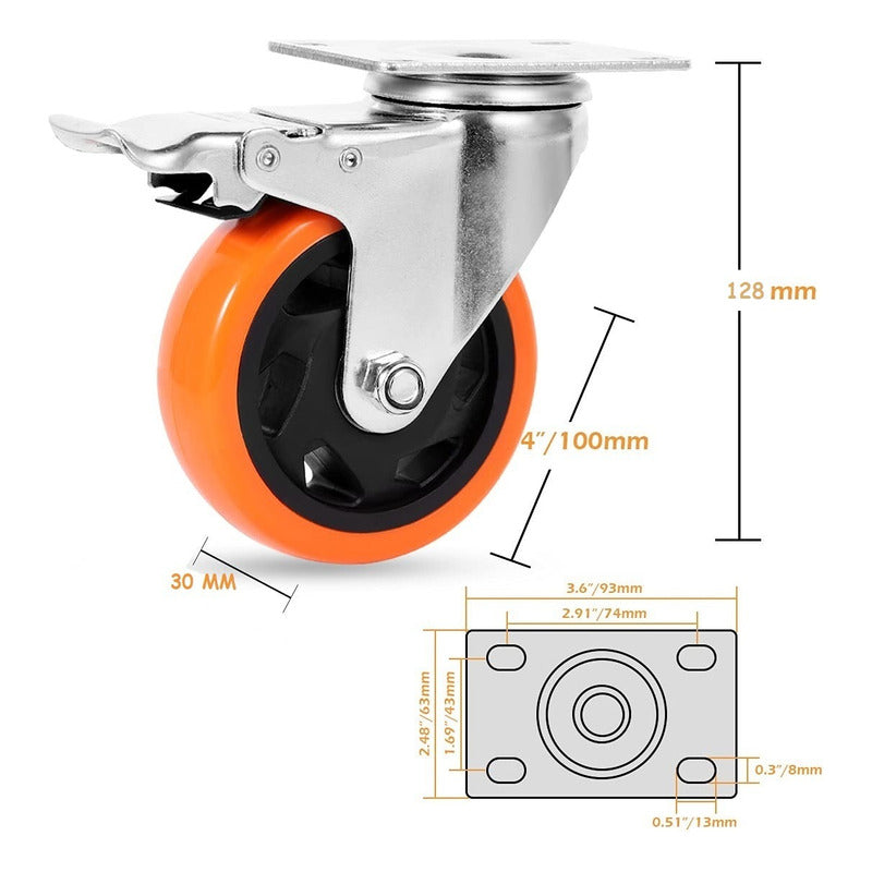 Pack X4 Rueda Giratoria Rueda 4 Pulgadas Rueda Con Freno Mul