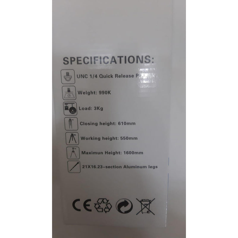 - Altura: extendida: aproximadamente 160 cm con la cámara alcanza los 170 cm, cerrada: 61 cm