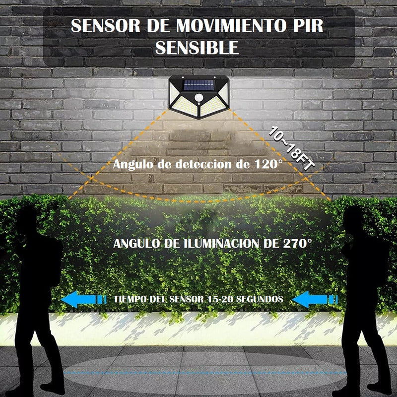 El ajuste frontal del interruptor del foco 100 LED es más fácil de operar, instalación simple (solo necesita 2 tornillos se pueden fijar en la pared exterior que se pueden iluminar con el sol.