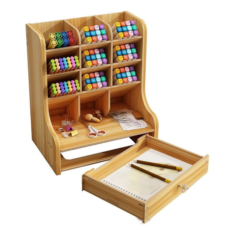 Organizador Escritorio Con Cajón Portalápices Oficina Mader