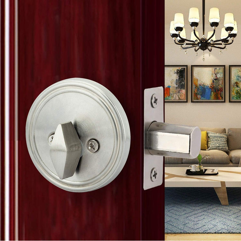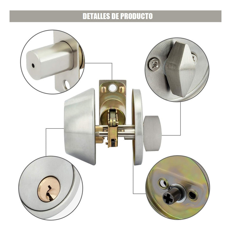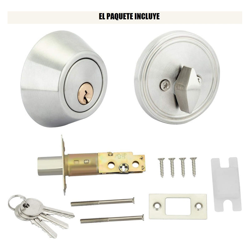 Este cerrojo de un solo cilindro se puede bloquear o desbloquear con una llave en el exterior o una perilla en el interior. Cada cerrojo tiene 3 llaves.