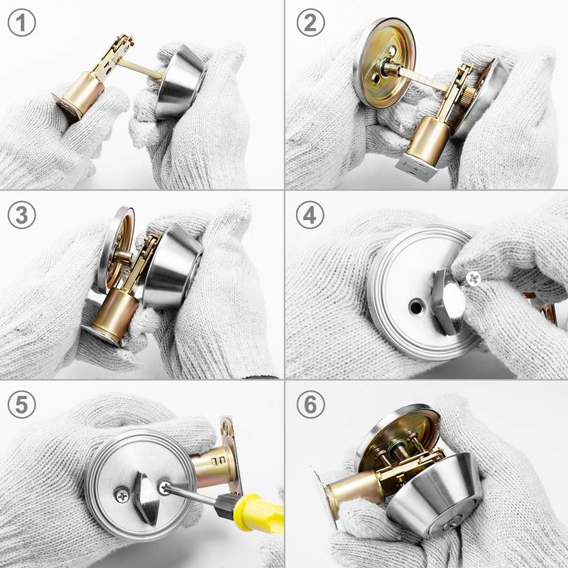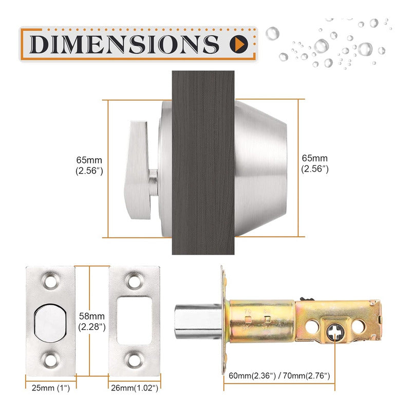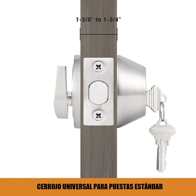 La cerradura de pestillo de níquel satinado con llave es adecuada para la mayoría de las puertas residenciales y comerciales. La cerradura de puerta es adecuada tanto para puertas de apertura a la derecha como a la izquierda.