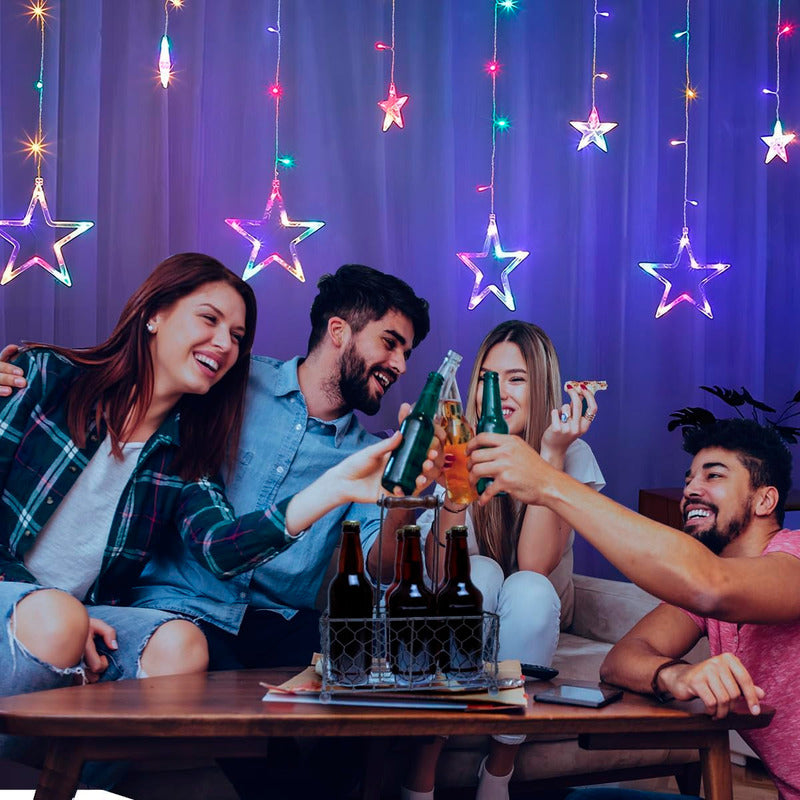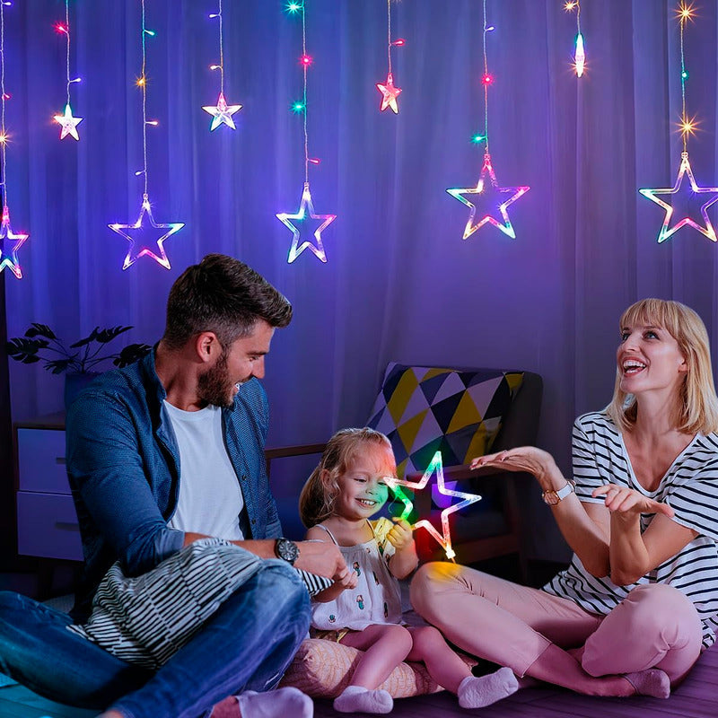 Guirnalda Cascada Multicolor Estrella 138 Led multicolor 3 Mts largo extendido y caída una de un 1 mt y otra de 0.5 mts intercaladas con estrellas