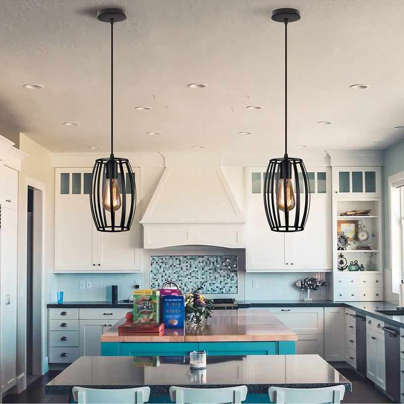 Pack X2 Lámpara Colgante Lámparas Techo Comedor Ovalada E27 Estructura Negro