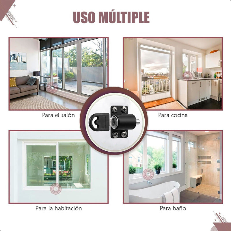 Evita accidentes debido a ventanas abiertas y puertas desbloqueadas, útil para proteger a tus hijos. Se sugiere que las cerraduras estén ajustadas en la parte superior e inferior para una máxima seguridad.