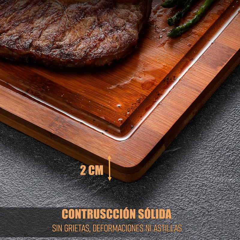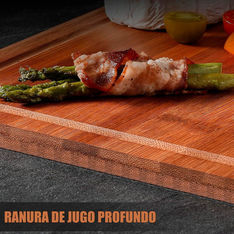 Esta tabla de cortar grande está hecha de bambú totalmente natural, y bien pulida con una superficie lisa, lo que la hace resistente a astillas o grietas. La suave madera de acacia no destrozará tu cuchillo y cubiertos, la superficie apta para cuchillos mantendrá las cuchillas más afiladas durante más tiempo