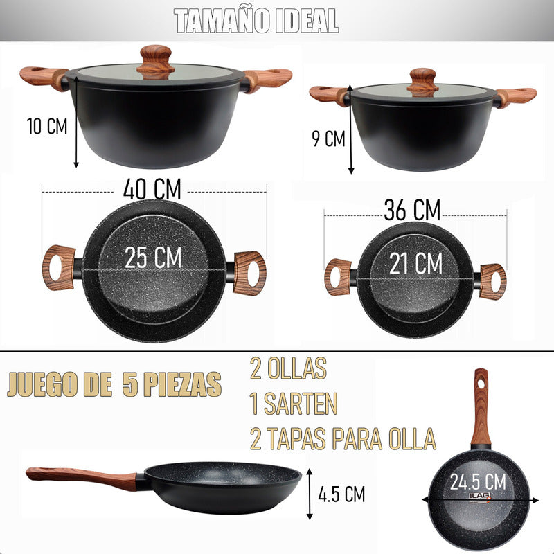 BATERÍA DE COCINA KEEP 5 PIEZAS BLACK GRANITE
