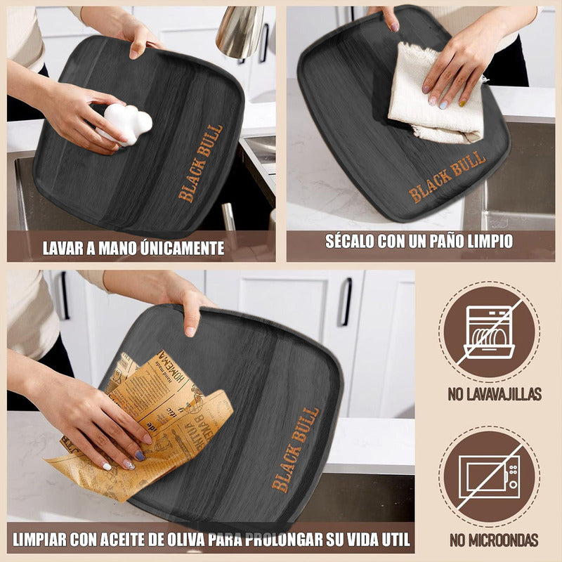 Nuestro plato black bull es adecuado para muchos usos. Por ejemplo, como para tartas, queso, embutidos, fruta, especias, sushi, canapé, pizza, etc.