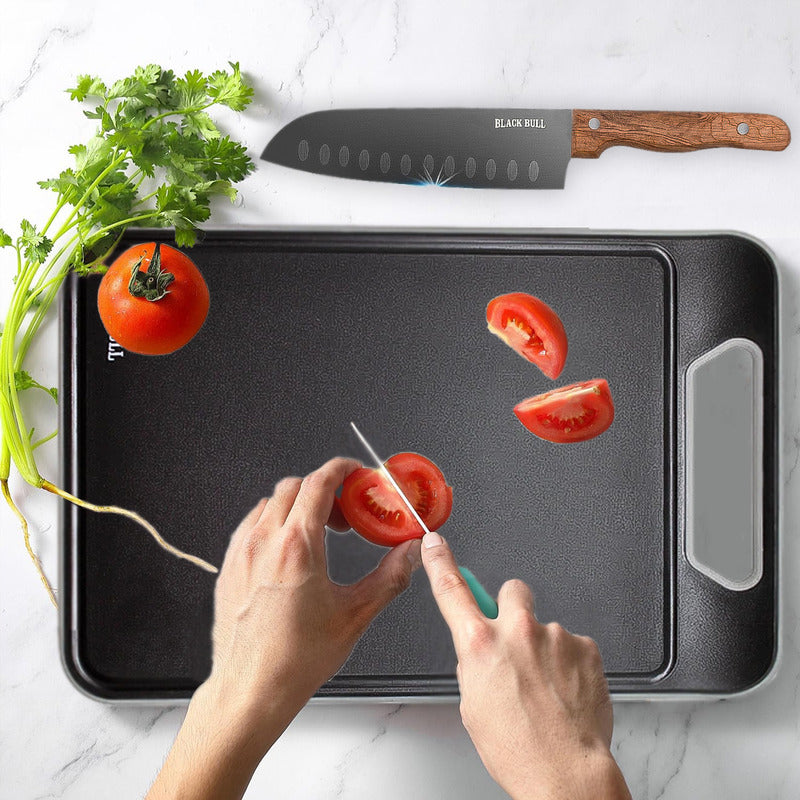 Set Tabla De Picar+cuchillo Santoku Cuchillo Carnicero Tabla